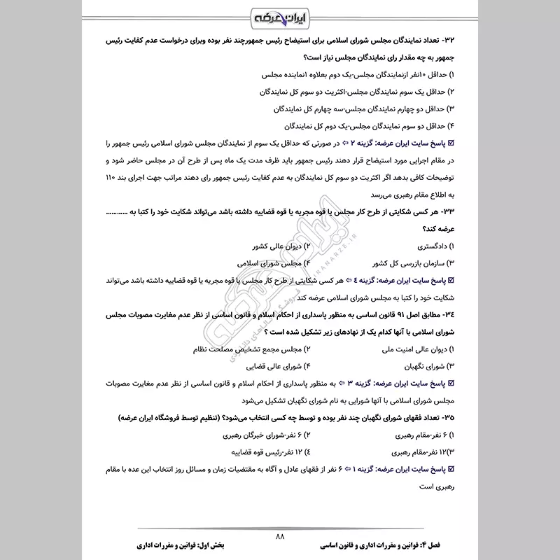 - فصل 4: سوالات قوانین و مقررات اداری و قانون اساسی - صفحه 80