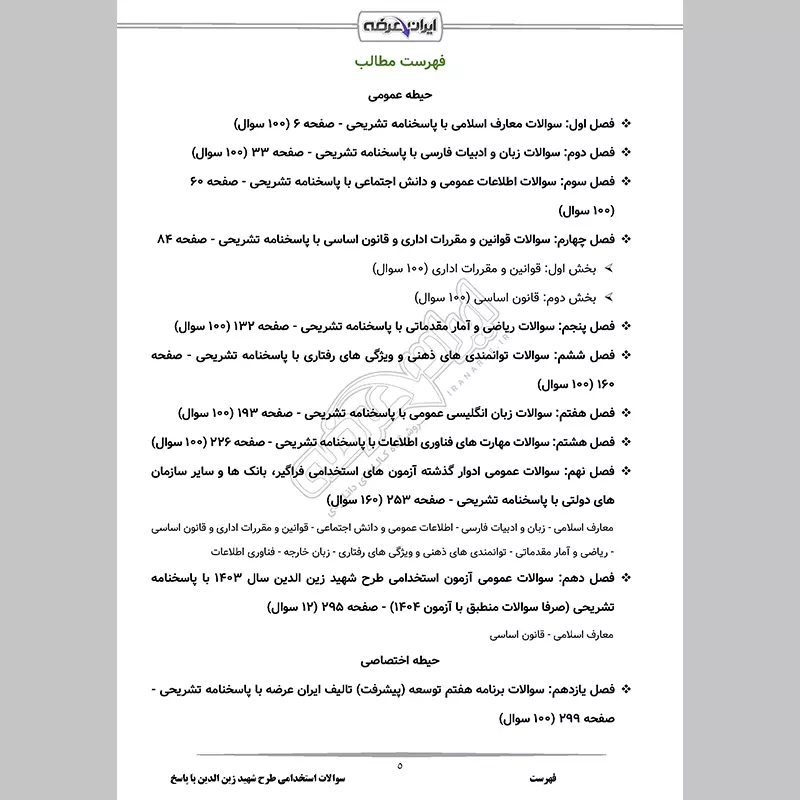 - فصل 10: سوالات عمومی آزمون استخدامی طرح شهید زین الدین سال 1403 (صرفا سوالات منطبق با آزمون 1404) - صفحه 295 (12 سوال)