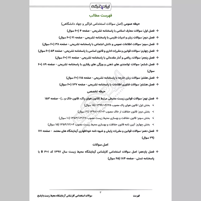 سوالات استخدامی کارشناس آزمایشگاه محیط زیست شامل 635 سوال با پاسخنامه تشریحی به شرح زیر: