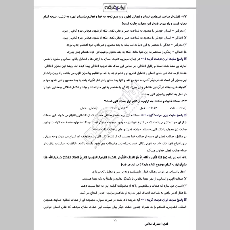 - فصل 1: سوالات معارف اسلامی - صفحه 4 (60 سوال)