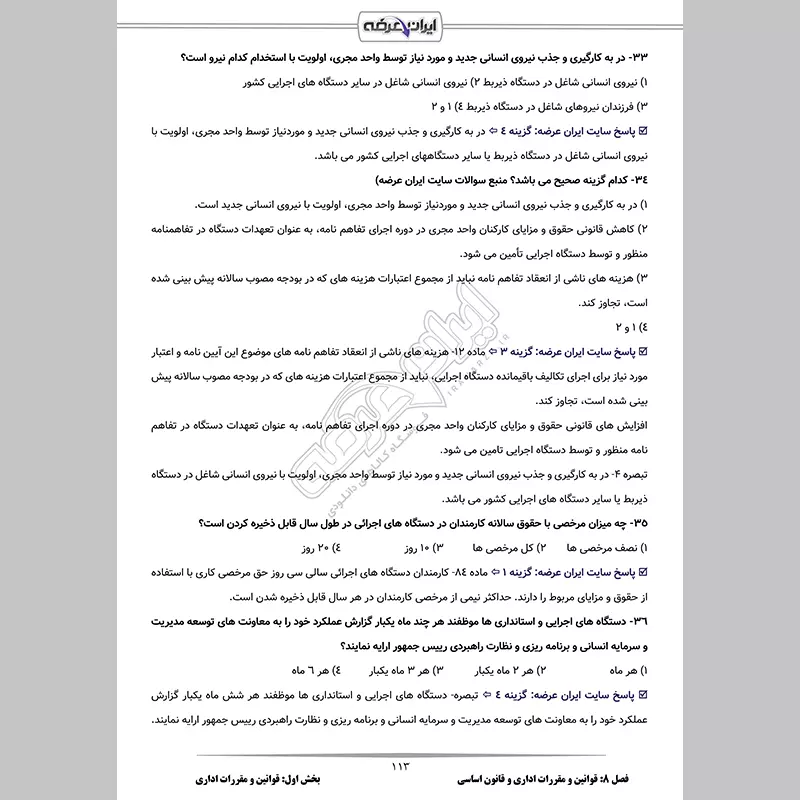 سوالات استخدامی فراگیر دستگاه های اجرایی با جواب