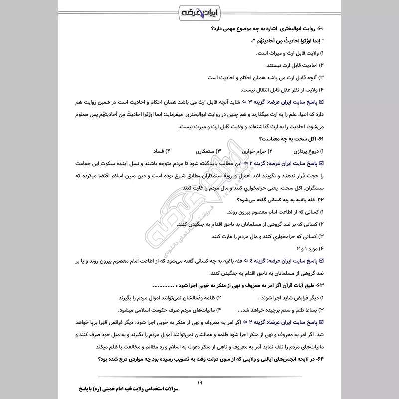 سوالات استخدامی قوه قضاییه با جواب (کادر اداری)