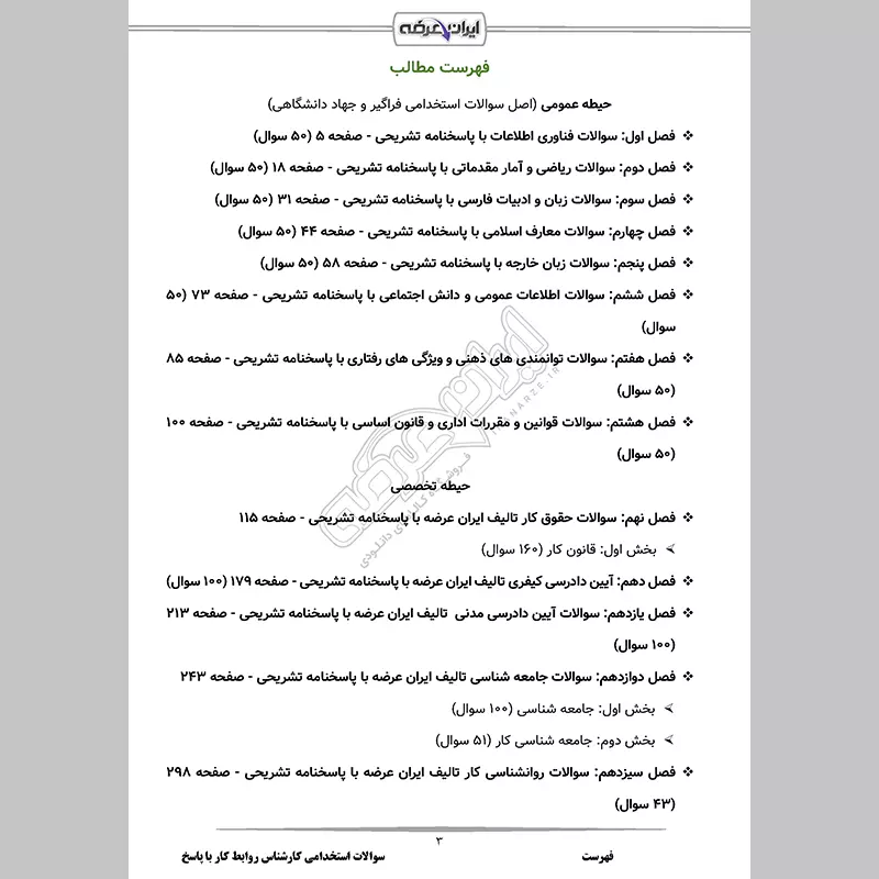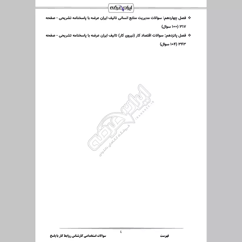 گروه آموزشی ایران عرضه اقدام به ارائه بسته ای جدید برای آمادگی در آزمون استخدامی کارشناس روابط کار نموده است، این مجموعه شامل سوالات تالیفی با قابلیت پرینت و دارای پاسخنامه میباشند.کارشناسان ما بر این باورند که این مجموعه عاملی مهم برای آمادگی شما در این آزمون بوده و قدمی مهم برای موفقیت در آن خواهد بود. با حل این سوالات، به طور کامل به سبک سوالات آزمون مسلط میشوید.