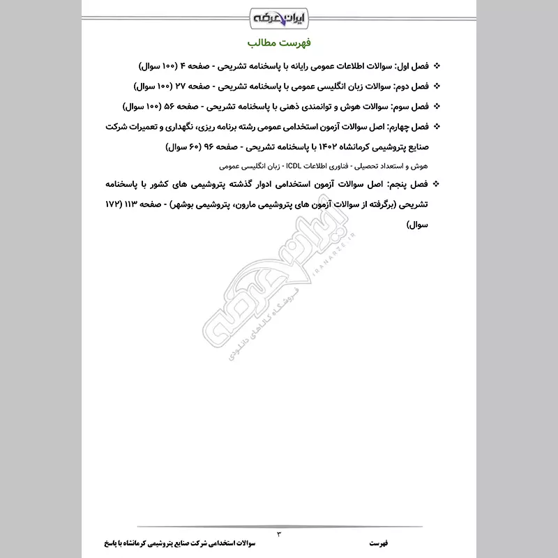 سوالات استخدامی شرکت صنایع پتروشیمی کرمانشاه 532 سوال با پاسخنامه تشریحی شامل:
