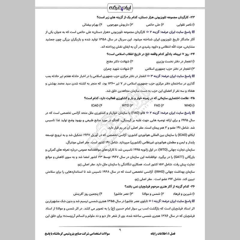 - فصل 4: اصل سوالات آزمون استخدامی عمومی رشته برنامه ریزی، نگهداری و تعمیرات شرکت صنایع پتروشیمی کرمانشاه 1402 - صفحه 96 (60 سوال)
