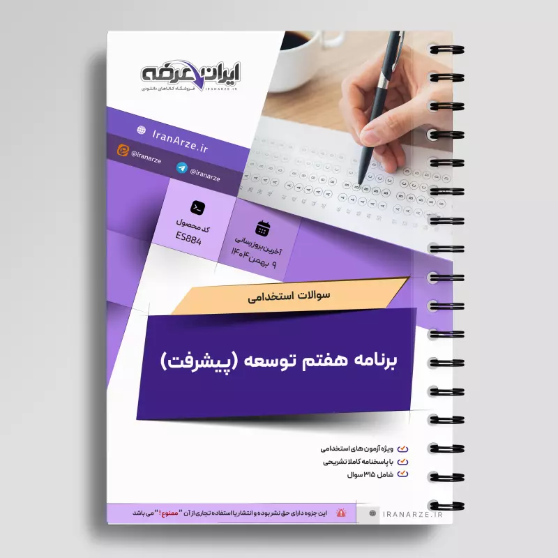 گروه آموزشی معتبر ایران عرضه اقدام به ارائه بسته ای جدید برای لایحه برنامه پنجساله هفتم پیشرفت و توسعه جمهوری اسلامی ایران همچنین سیاست های کلی نظام در برنامه هفتم با اولویت پیشرفت اقتصادی توام با عدالت نموده است. این محصول بر اساس منابع جدید تهیه گردیده است که شامل سوالات تالیفی کلیدی به همراه پاسخنامه تشریحی دقیق و جامع در قالب فایل PDF با قابلیت پرینت می باشد. برای شروع مطمئن از این فرصت طلایی استفاده کنید و با مطالعه این منبع کامل موفقیت خود در آزمون را تضمین کنید.