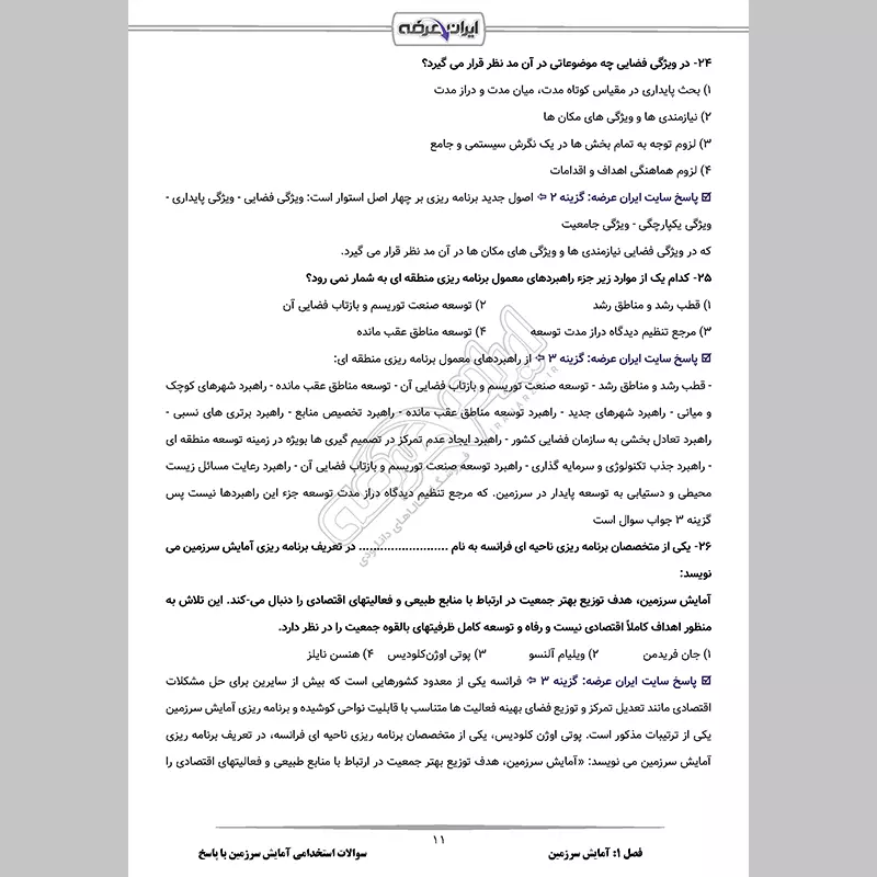 پاسخسوالات آمایش سرزمین مجزا می باشد که در برخی از مشاغل آزمون طرح شهید زین الدین در حیطه اختصاصی مطرح شده است