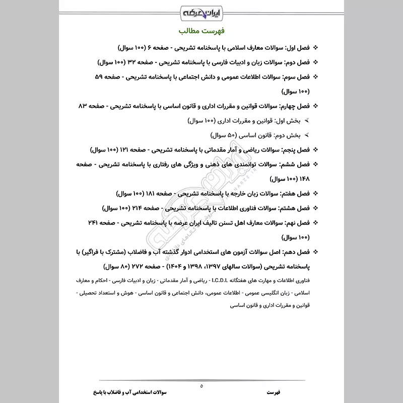 - فصل 10: اصل سوالات آزمون های استخدامی ادوار گذشته آب و فاضلاب (مشترک با فراگیر) (سوالات سالهای 1397، 1398 و 1404) - صفحه 272 (80 سوال)
