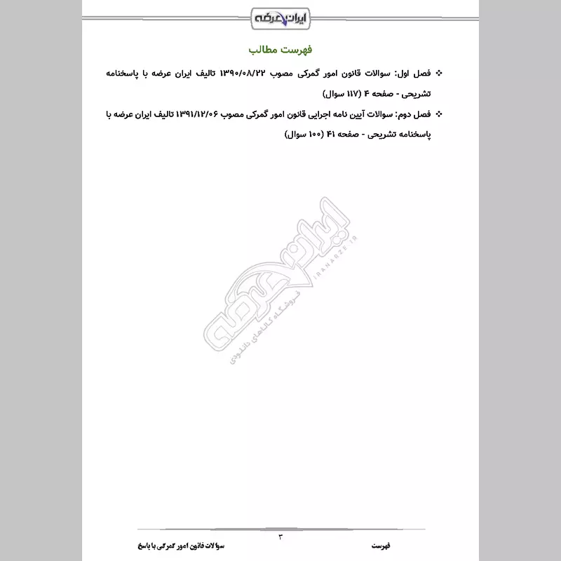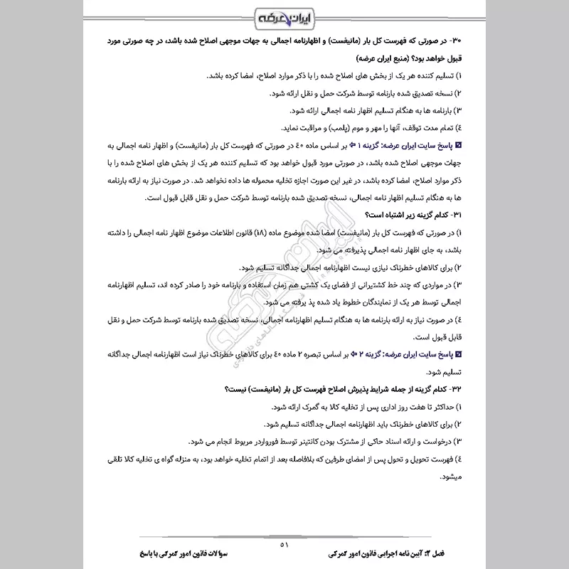 • فصل 2: سوالات آیین نامه اجرایی قانون امور گمرکی مصوب 06/12/1391 تالیف ایران عرضه - صفحه 41 (100 سوال)