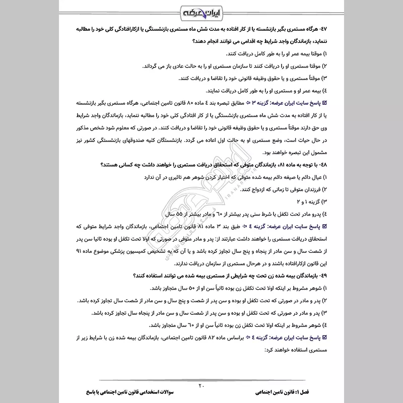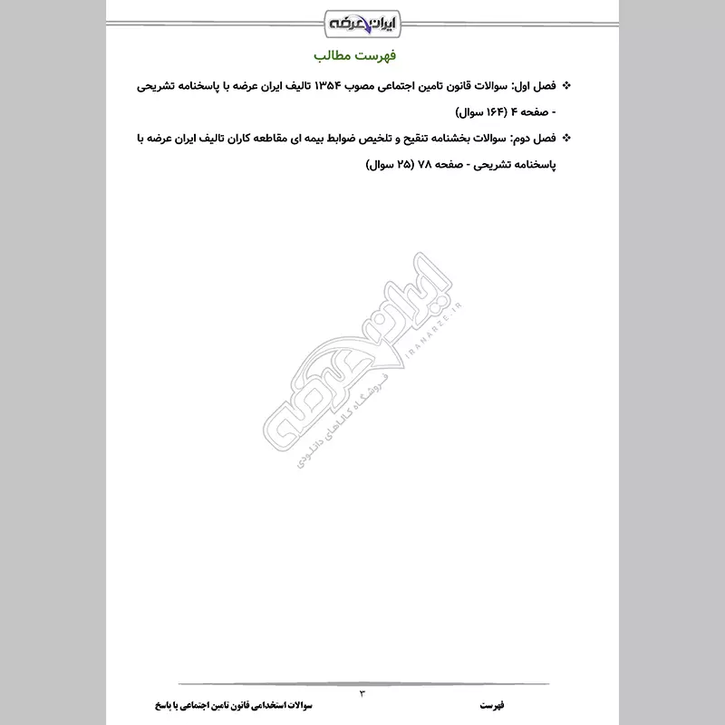 گروه آموزشی ایران عرضه اقدام به ارائه بسته ای جدید برای قانون تامین اجتماعی مصوب 1354/04/03 با اصلاحات و الحاقات بعدی نموده است. این مجموعه شامل سوالات تالیفی ایران عرضه به همراه پاسخنامه تشریحی با قابلیت پرینت میباشد. کارشناسان ما بر این باورند که این مجموعه عاملی مهم برای آمادگی شما در آزمون های مختلف بوده و قدمی مهم برای موفقیت در آن خواهد بود.