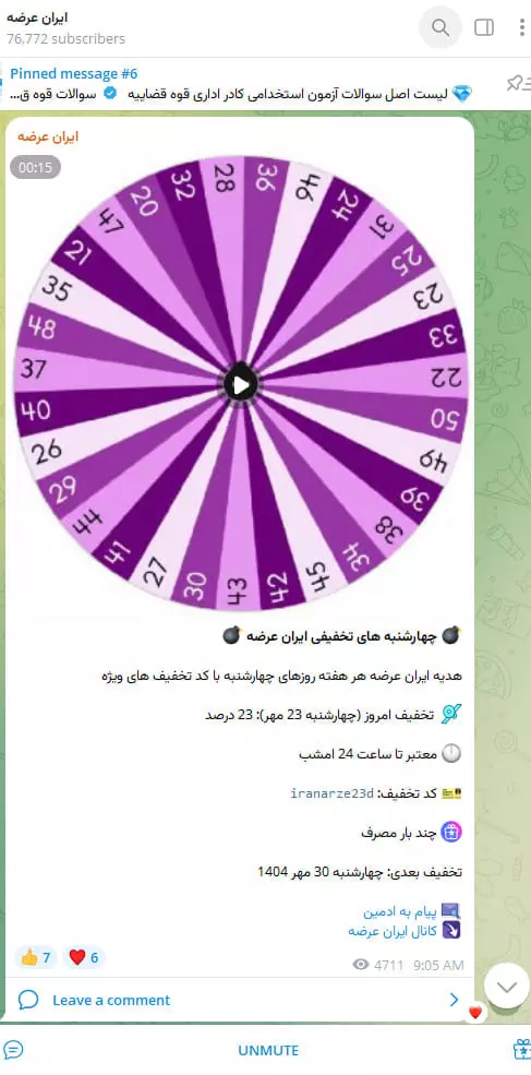 این تخفیف شامل تمامی محصولات ایران عرضه شده و فرصتی مناسب برای کاربران جهت تهیه محصولات و منابع آزمون فراهم می کند. لطفا برای دریافت تخفیف محصولات ایران عرضه، عضو کانال تلگرام یا ایتا ایران عرضه شده و چهارشنبه هر هفته کد تخفیف جدید را دریافت نموده و در سبد خرید خود اعمال نمایید.